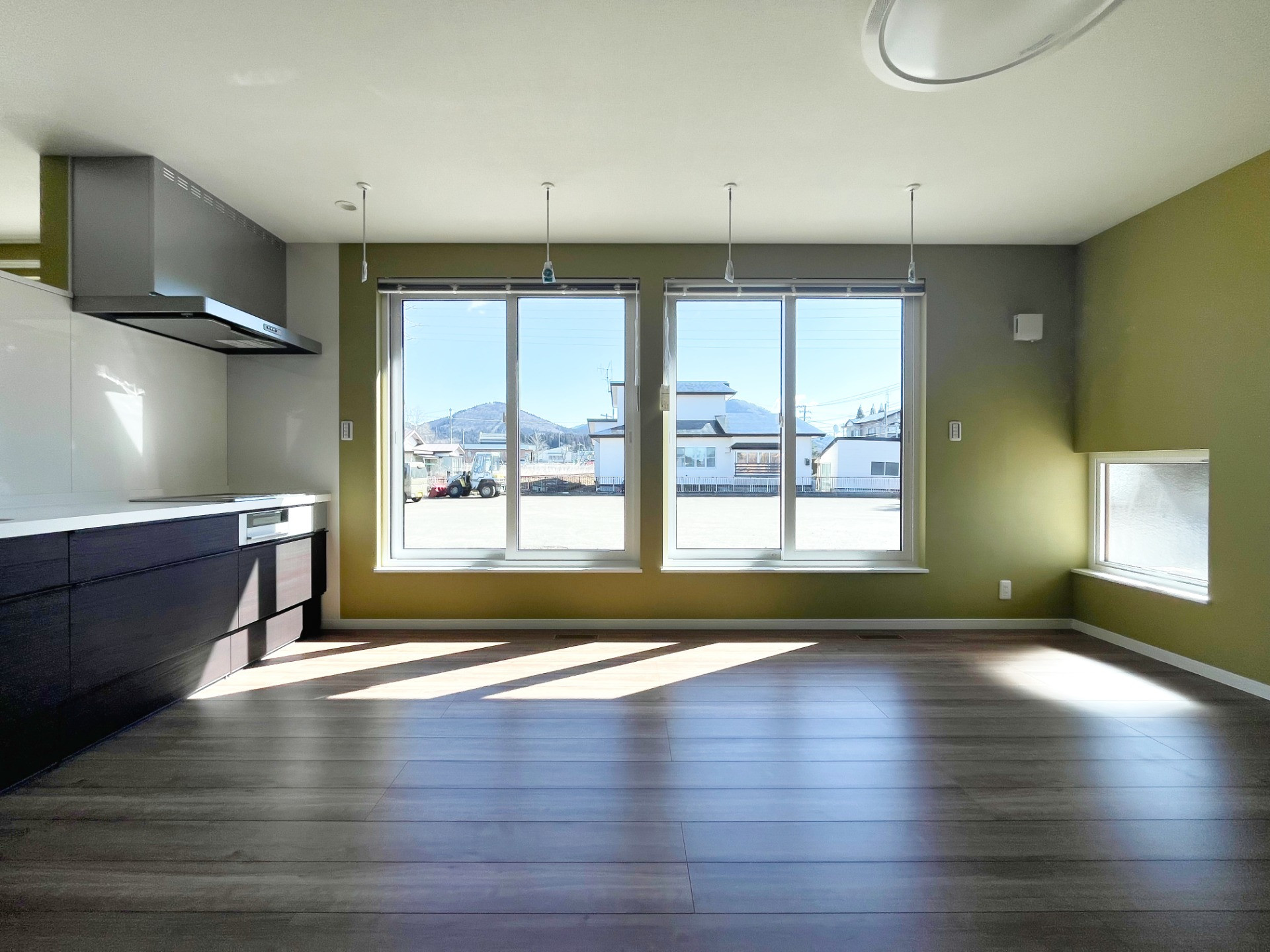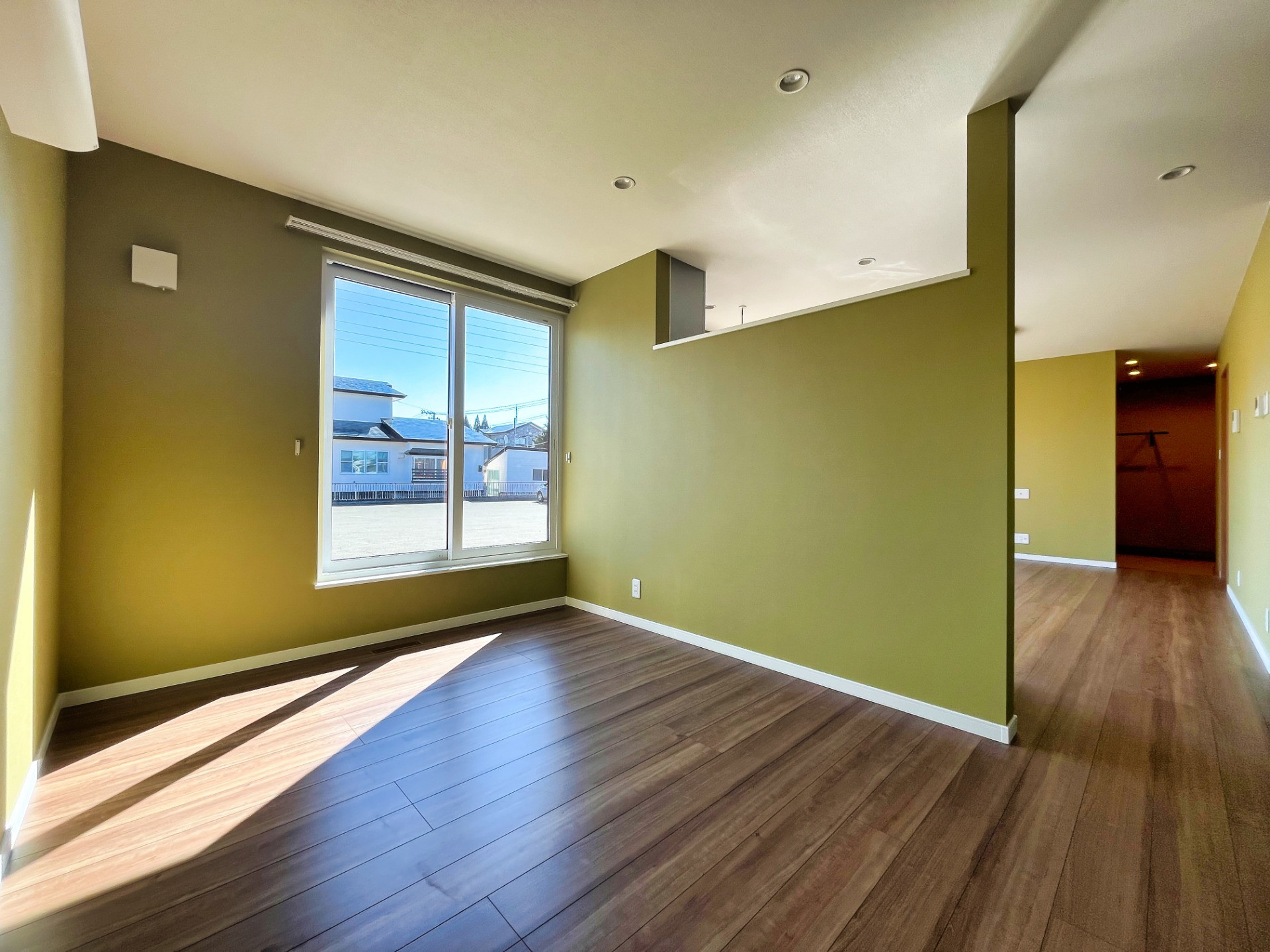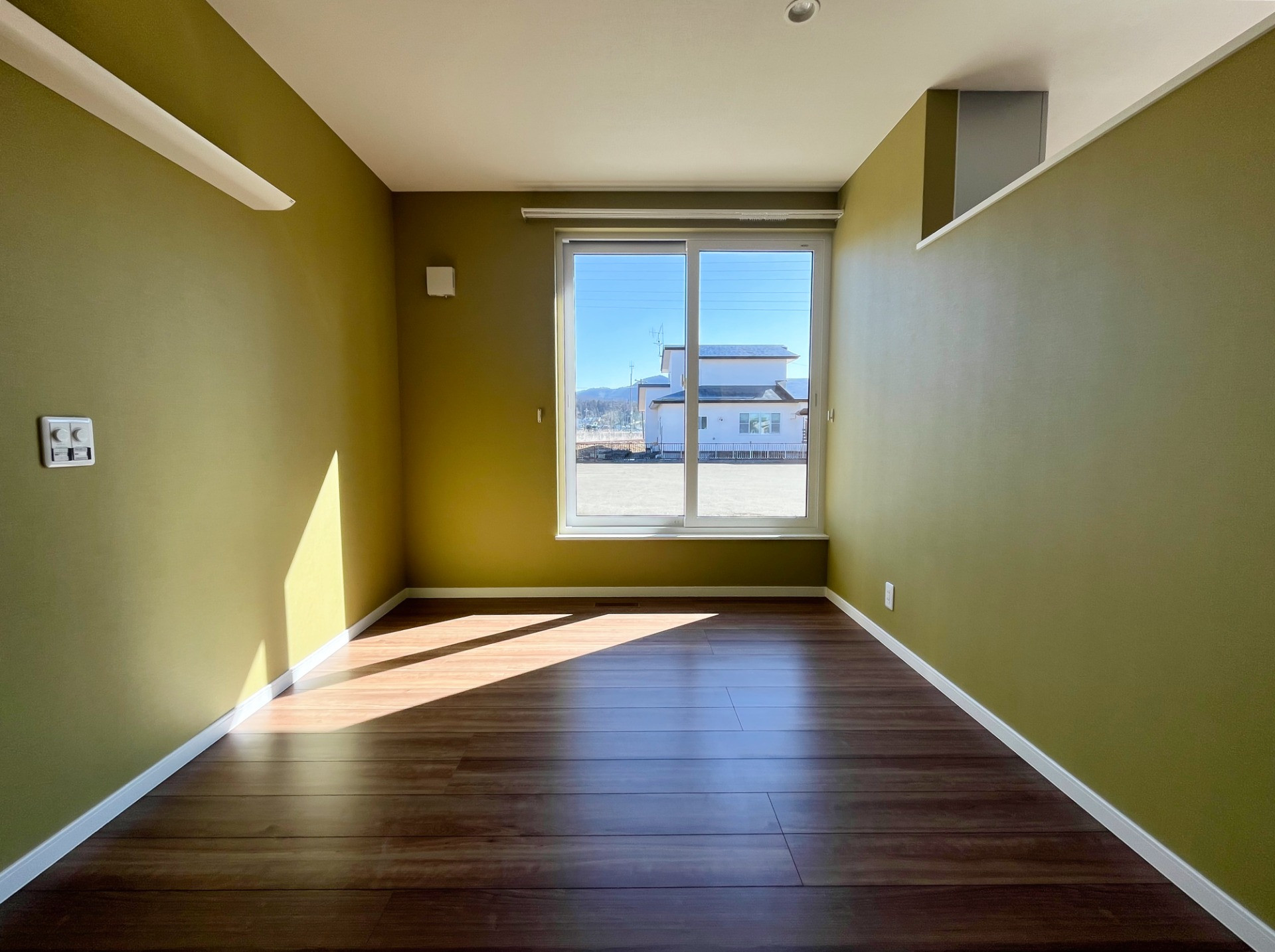 リビングと寝室に採用した、大きな引違い窓。