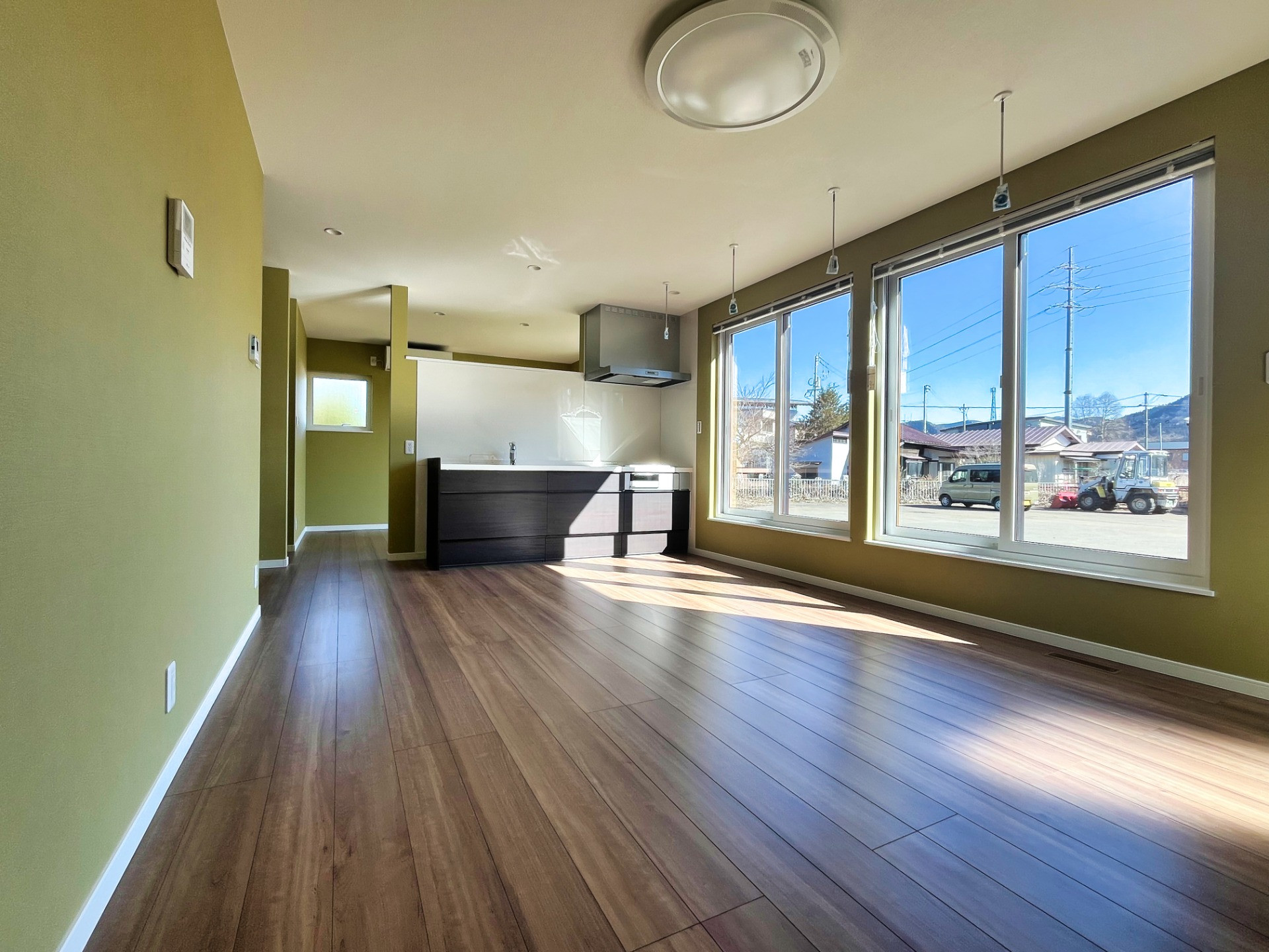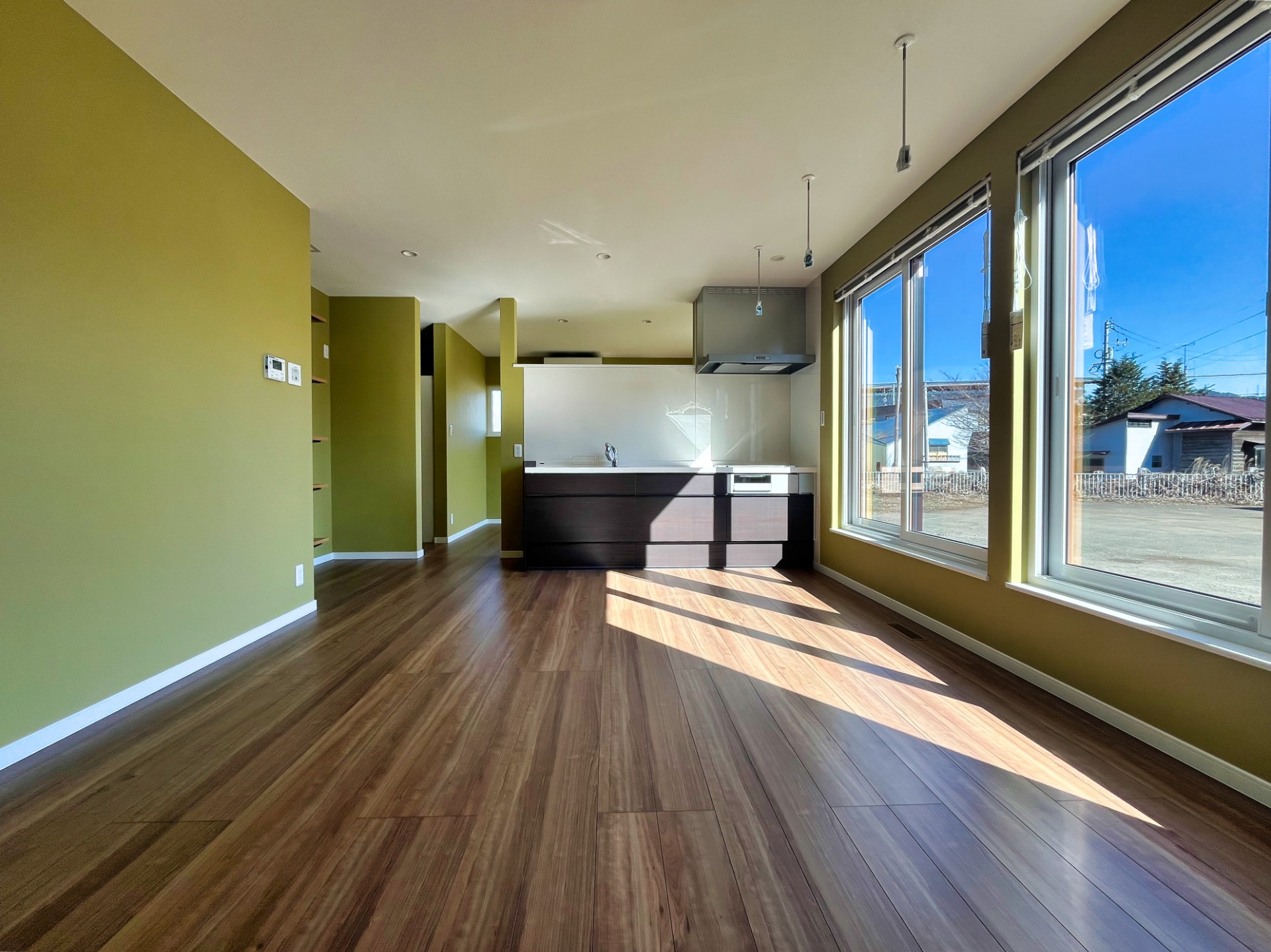 朝の光が奥まで差し込み、家全体を明るく包み込む。