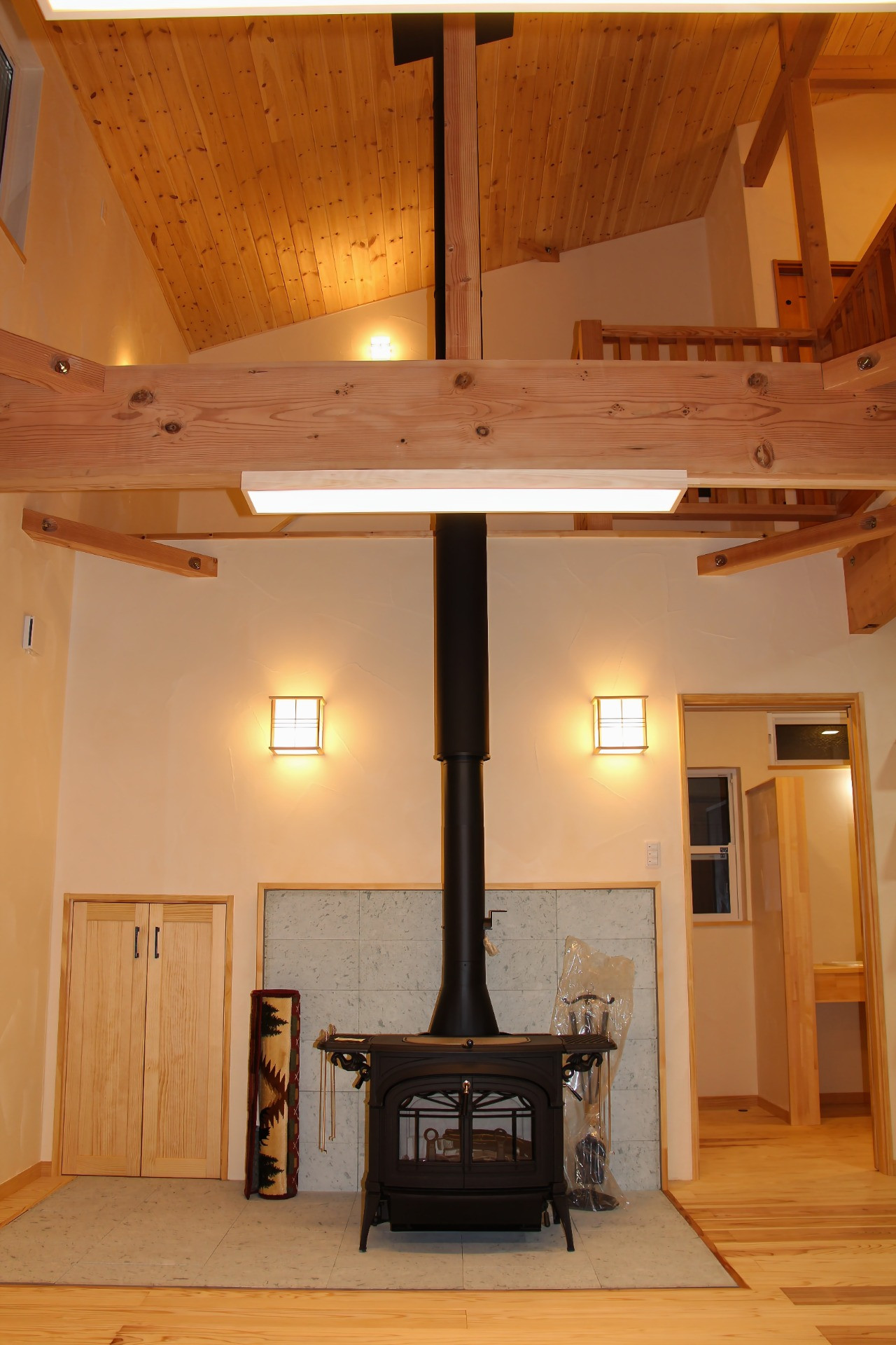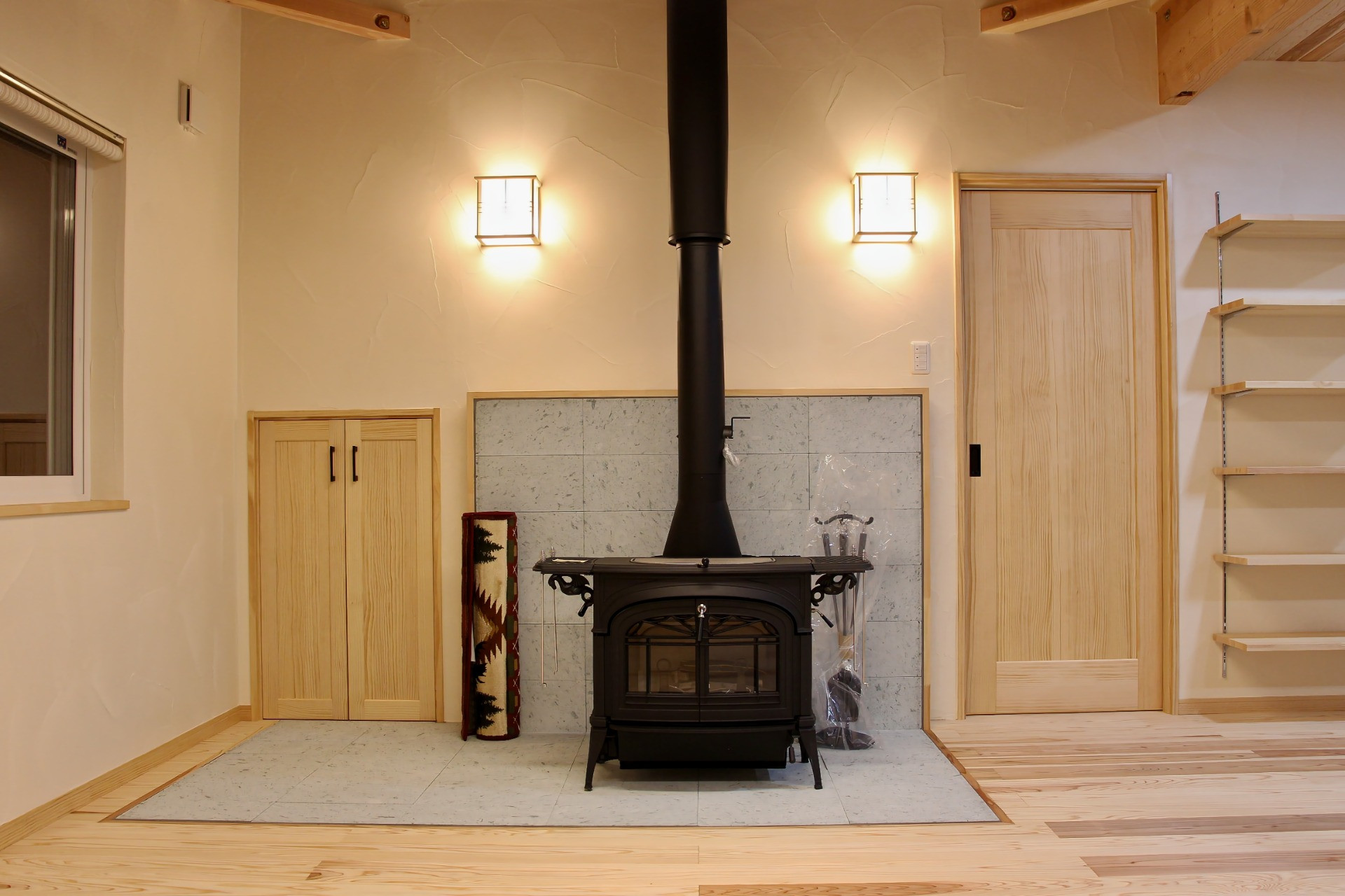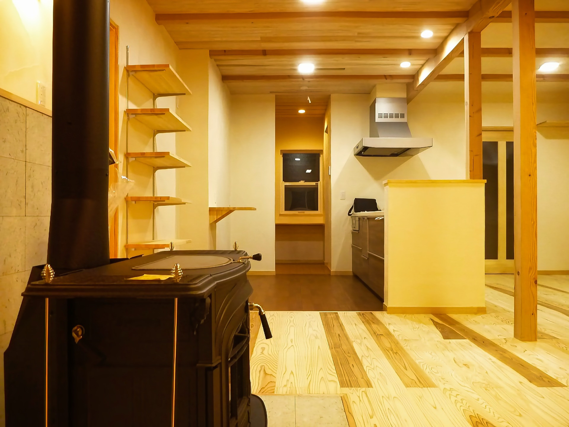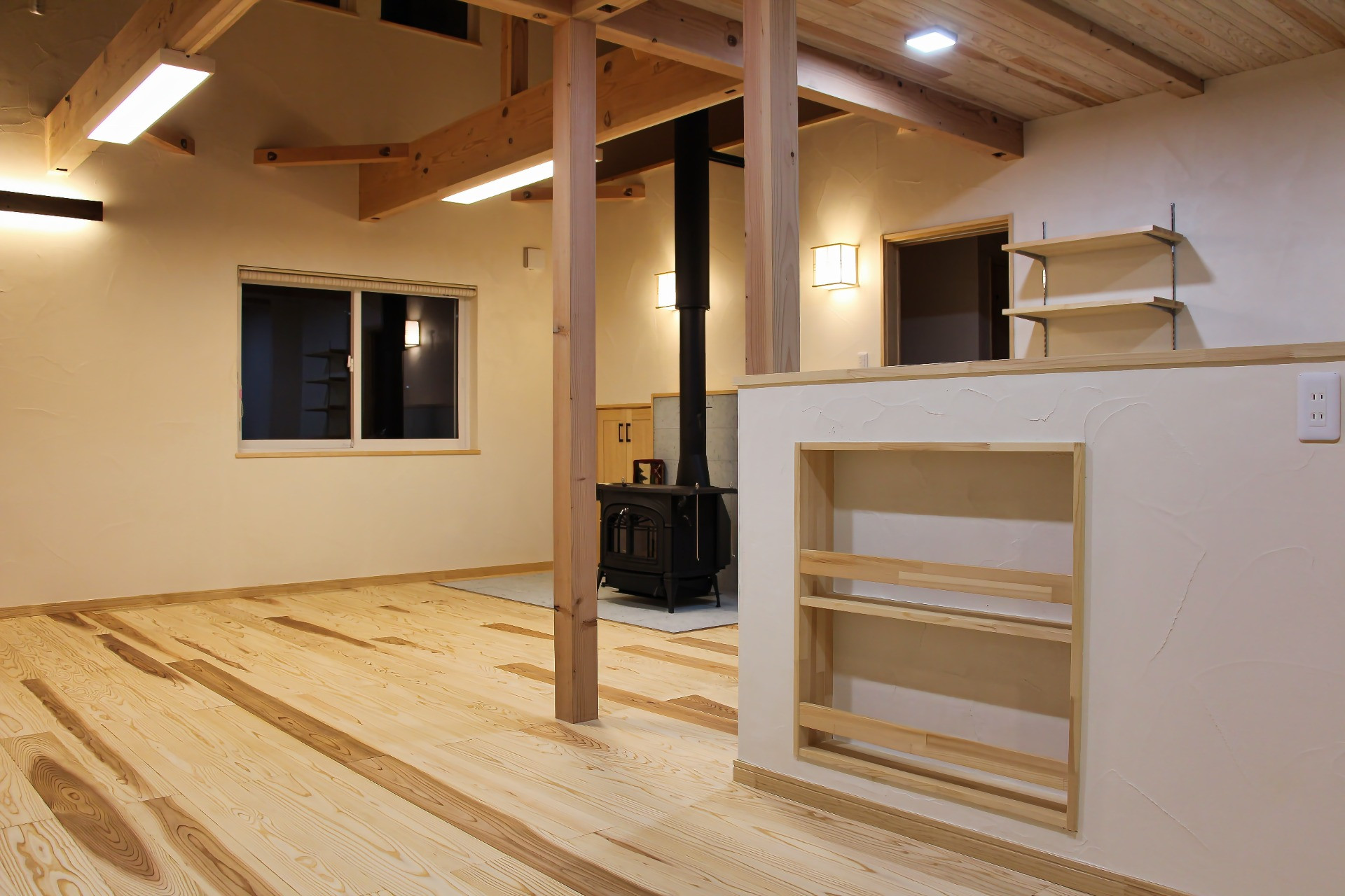 杉と漆喰、そして火のぬくもりを感じる住まい