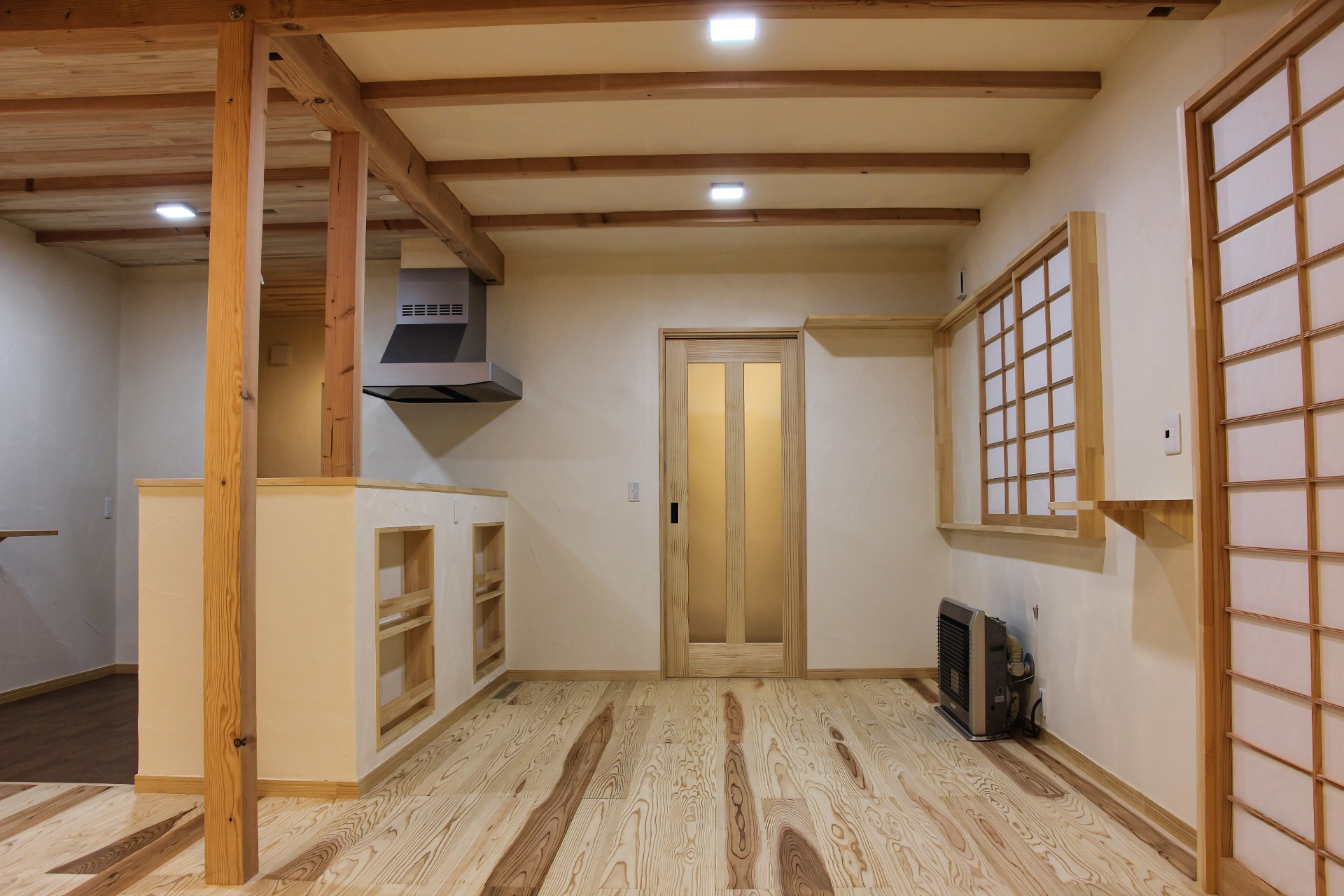天井:漆喰塗り 羽目板張り(杉板)