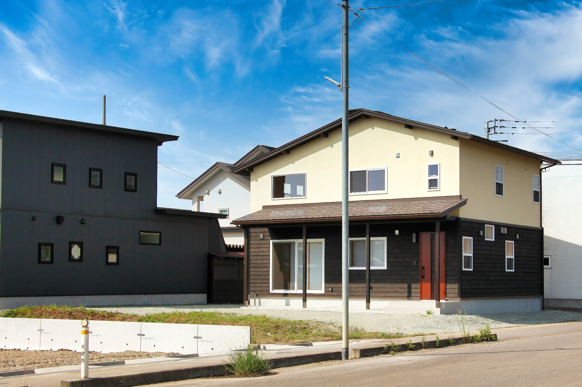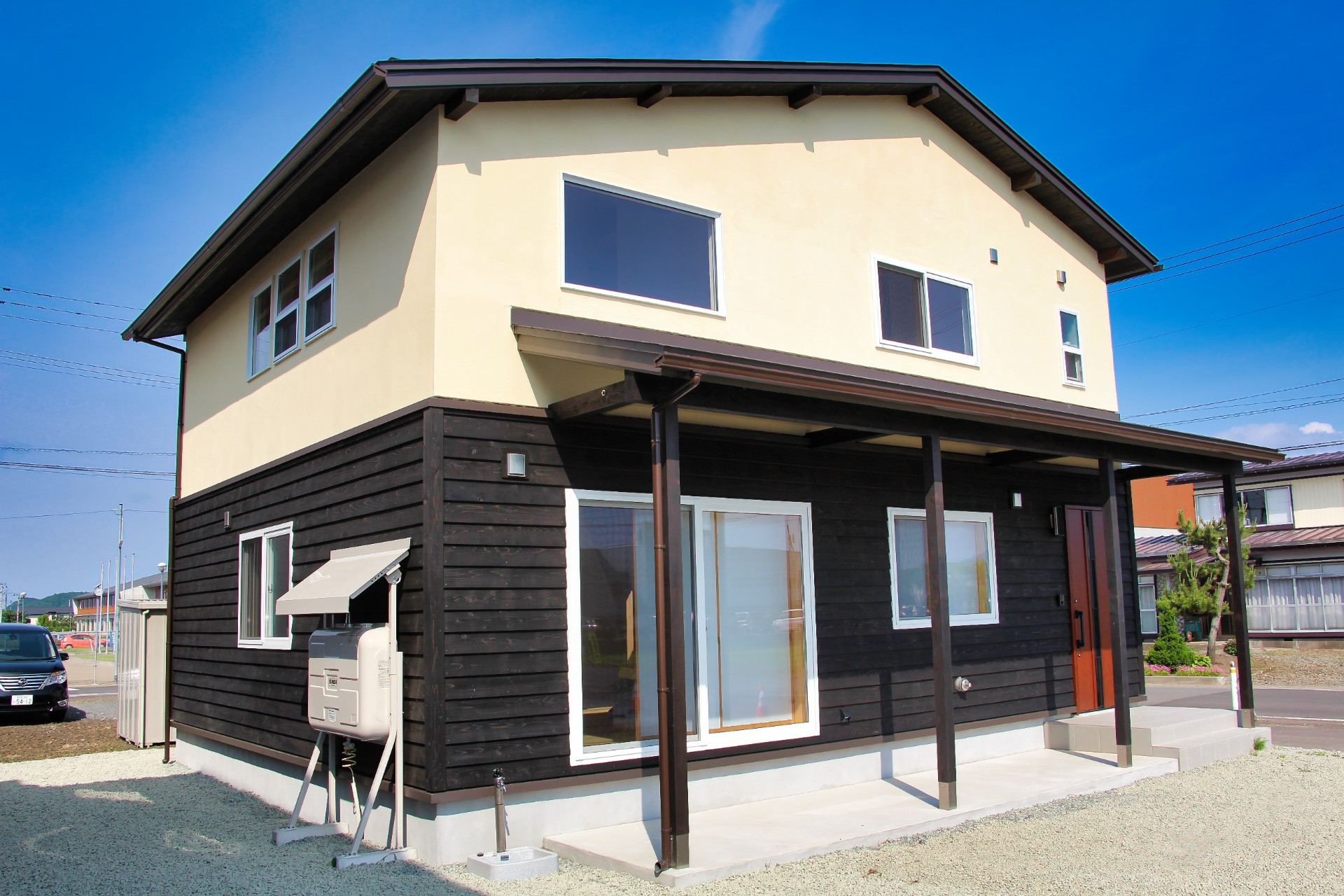 ・外壁:1階 塗り壁 2階 杉板張り